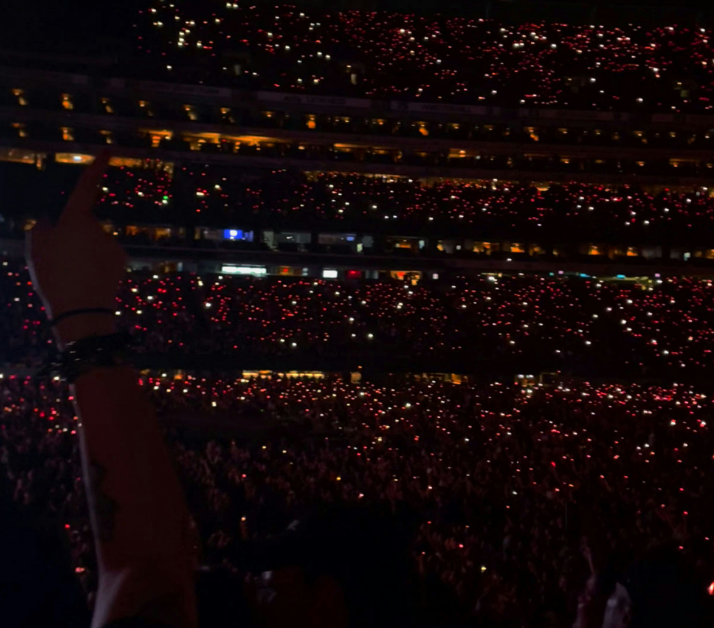 *There were two important handouts fans got on their way into the stadium for interactivity during the concert. First was a handheld poster, that read “YEA” on one side and “NAY” on the other that were used for the aforementioned execution vote during the show. Second was a small piece of colored paper to put in front of your phone light. The payoff was that the entire stadium glowed red while we swayed during the slower songs. Super cool to see.