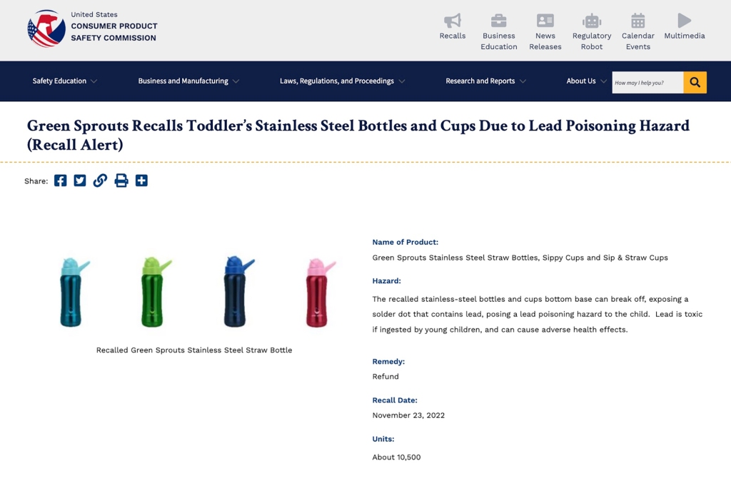 The cups, commonly sold in Whole Foods, Bed Bath and Beyond, and on Amazon’s baby section, have a bottom base that can break off, exposing children to a solder dot, a lead-based metal used in welding to adhere metallic surfaces together.