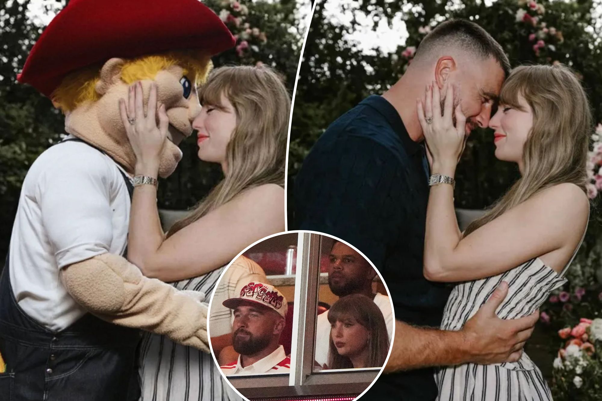 “Change of plans,” the caption read alongside the image of the mascot cozying up to Swift and holding her waist.