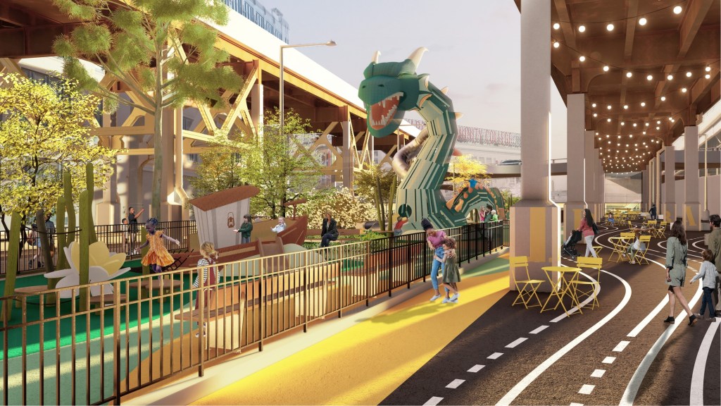 In addition to the presumably friendly dragon, the park designed by Studio V and LVF Landscape Architects will boast children’s playgrounds, a dog run, public seating, extensive plantings and public art space. It’s funded by $5.5 million from the developers and a $2.4 million grant awarded by Gov. Kathy Hochul.