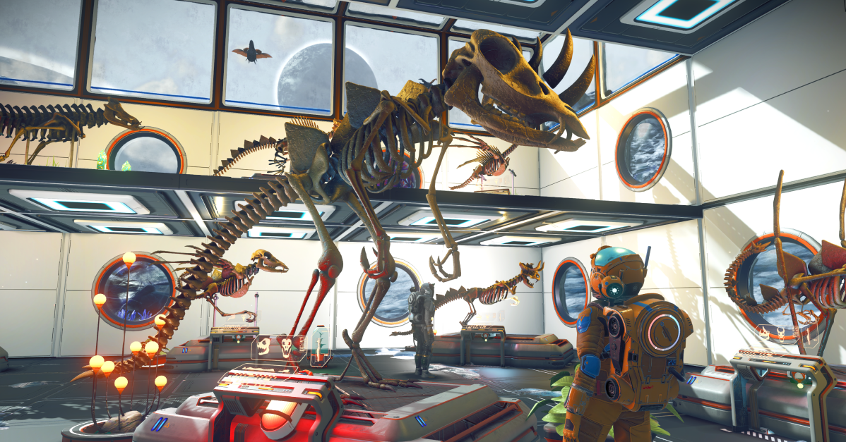 There is a truly huge variety of procedural prehistoric bones, in all shapes and sizes, to excavate and collect. It’s up to you how you reassemble them and there’s a lot of fun to be had building ever-more outrageous skeletons to put on display in your bases-turned-museums or share with your fellow Travellers.