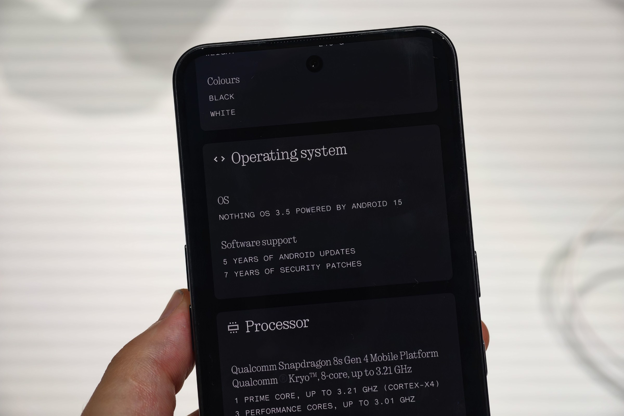 This is Nothing’s most expensive phone yet, but on paper the specs should keep pace with the price. The Snapdragon 8S Gen 4 chip isn’t the most powerful around right now, but its performance should cope with all but the most demanding mobile games, especially paired with up to 16GB of RAM. Storage starts at 256GB, and for an additional $100, you can get 512GB.