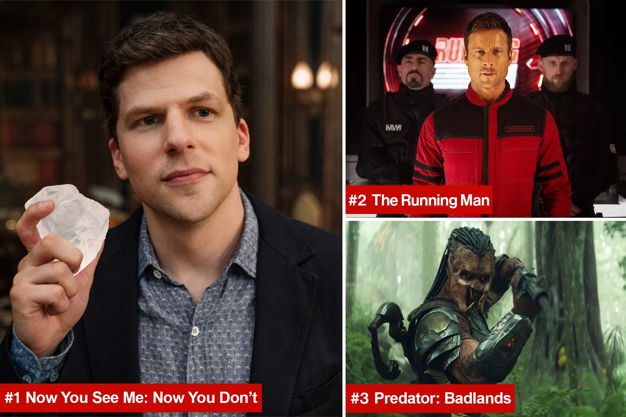 “Predator: Badlands,” which was in the top spot last Friday, fell to third place, with a $3.5 million take.