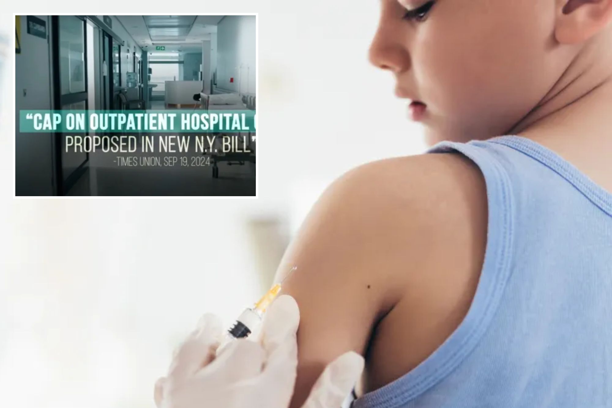 “Two patients walk into their local doctor’s offices for the same procedure but pay a very different price. This is happening all over New York because big hospitals are taking over independent doctors’ offices and driving up the cost of routine procedures,” the 30-second TV ad says.