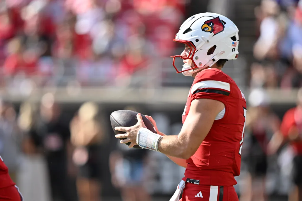 Louisville’s Miller Moss takes on Miami on Friday. Jamie Rhodes-Imagn Images