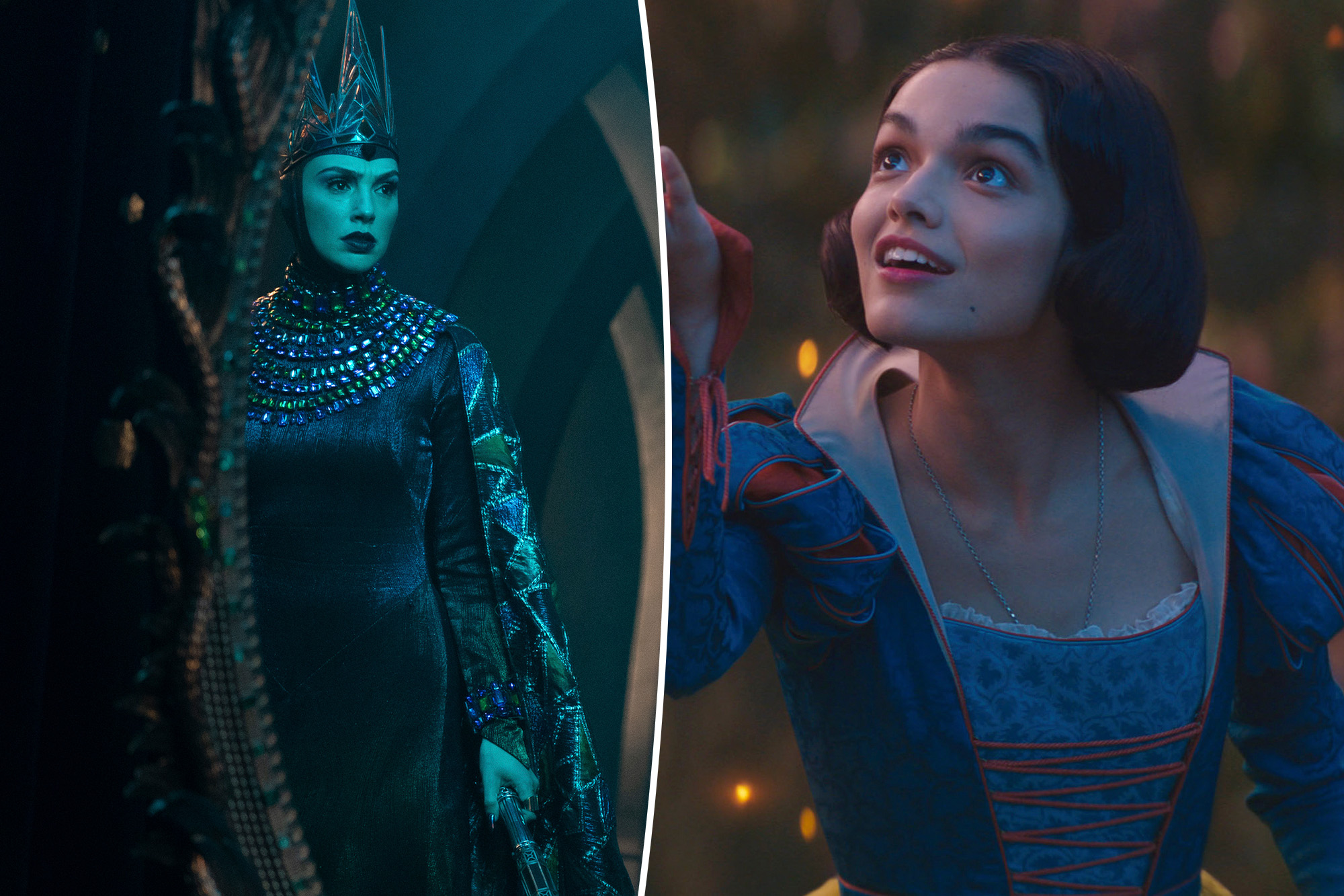 In this version, the evil queen (Gal Gadot) not only torments her fairest-of-em-all stepdaughter (Rachel Zegler) she so envies, but is an oppressive monarch who’s forced all of her male subjects to become soldiers.