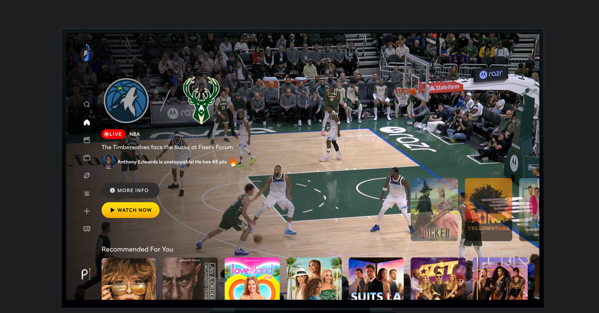 Peacock, which started experimenting with short-form videos on mobile earlier this year, will add clips of key NBA plays to a carousel of vertical videos you can scroll through. On TV, you’ll be able to scroll beneath the video player to catch up on highlights you might’ve missed, a feature Peacock first added for Premier League games in 2022. The streaming service also plans on adding a new “Courtside Live” feature later in the season, which will offer views from alternate angles on the court.