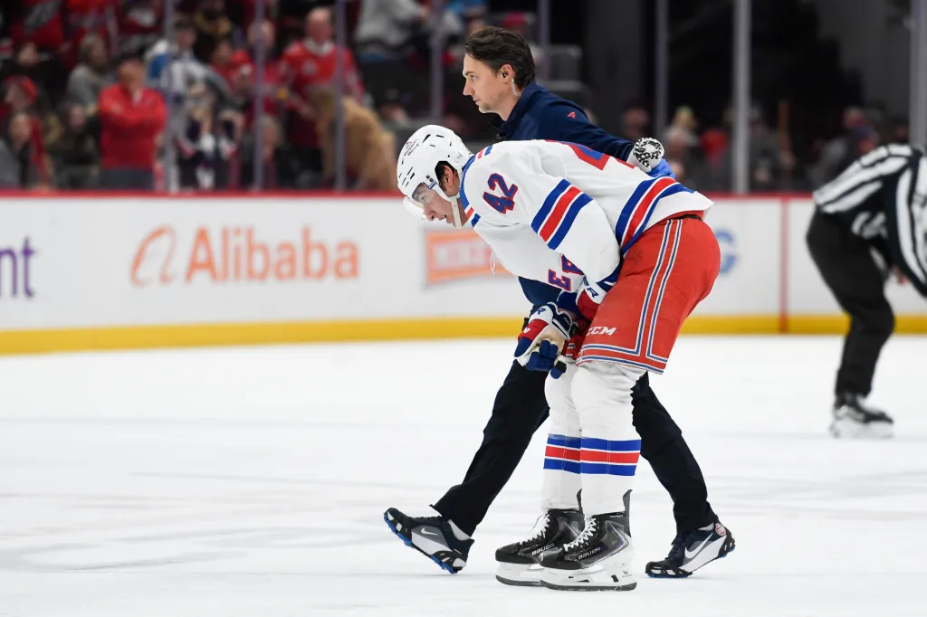 Rangers rookie Noah Laba, who suffered an upper-body injury during their New Year’s Eve loss to the Capitals, may return to the lineup on Saturday against the Bruins in Boston. Hannah Foslien-Imagn Images
