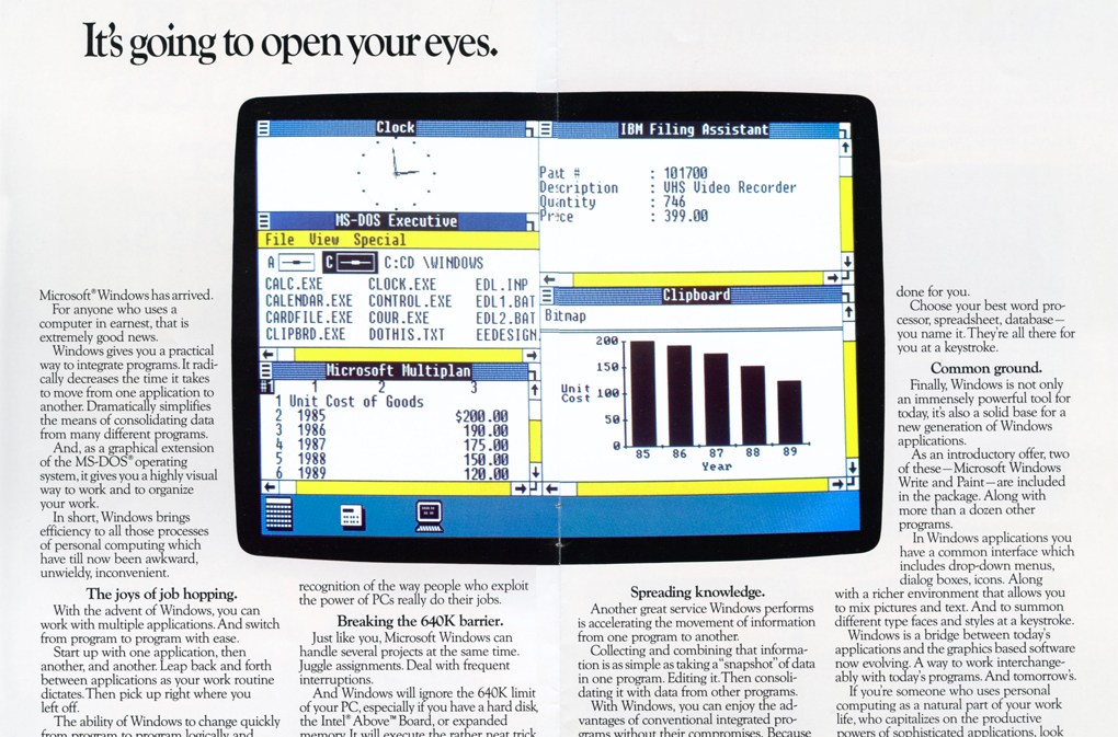 “Windows provides unprecedented power to users today and a foundation for hardware and software advancements of the next few years. It is unique software designed for the serious PC user, who places high value on the productivity that a personal computer can bring.”