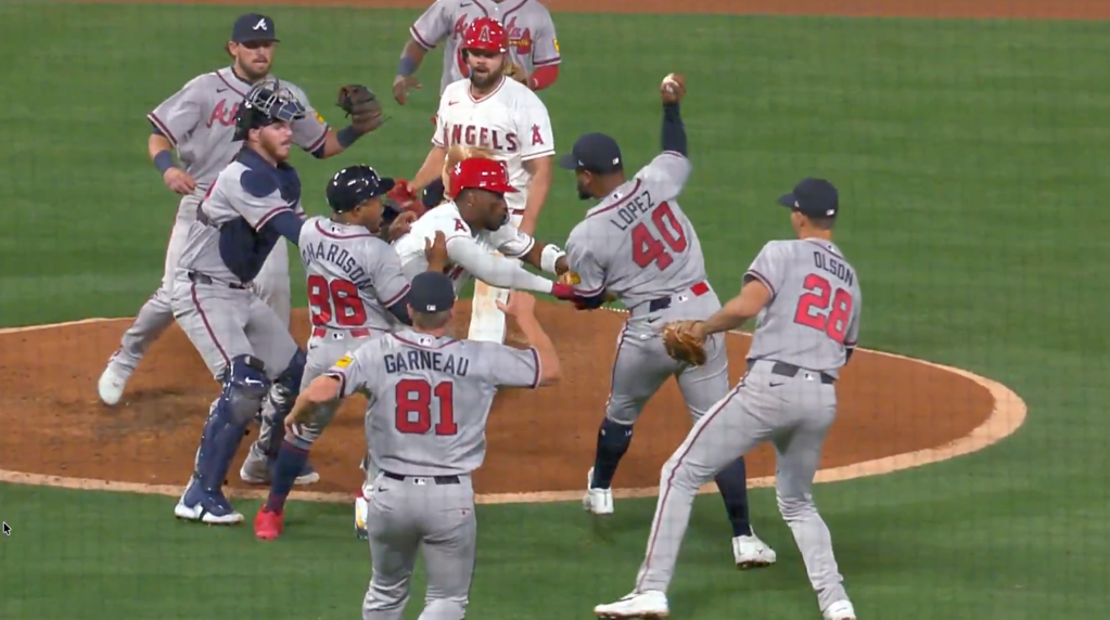 Braves starter Reynaldo Lopez punched Angels slugger Jorge Soler with the baseball during Tuesday’s benches-clearing brawl in Anaheim.