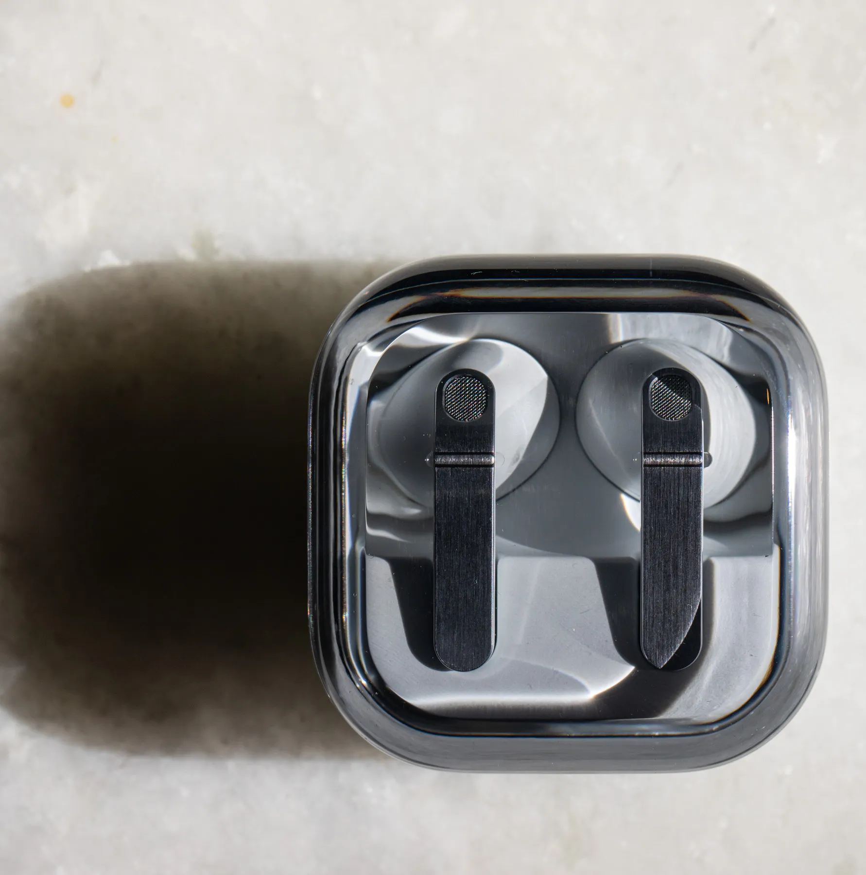 Carried over from the Buds 3 is a transparent top charging case, so you can show off your earbuds as they charge (do people do this?). It’s a clamshell design with wireless charging that fits well into small pockets and is smaller than the cases for the AirPods, Sony WF-1000XM6, and XM5, and much smaller than the bulky Bose Ultra Earbuds.