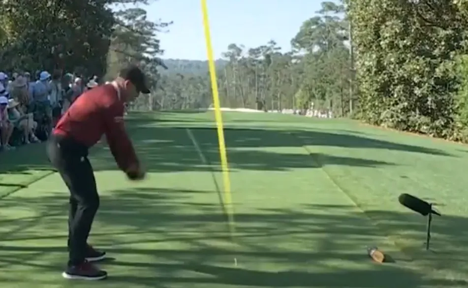 Sergio Garcia (r.) broke his driver when he smashed it in frustration at the second tee during the final round of The Masters on April 12, 2026. X/ESPN