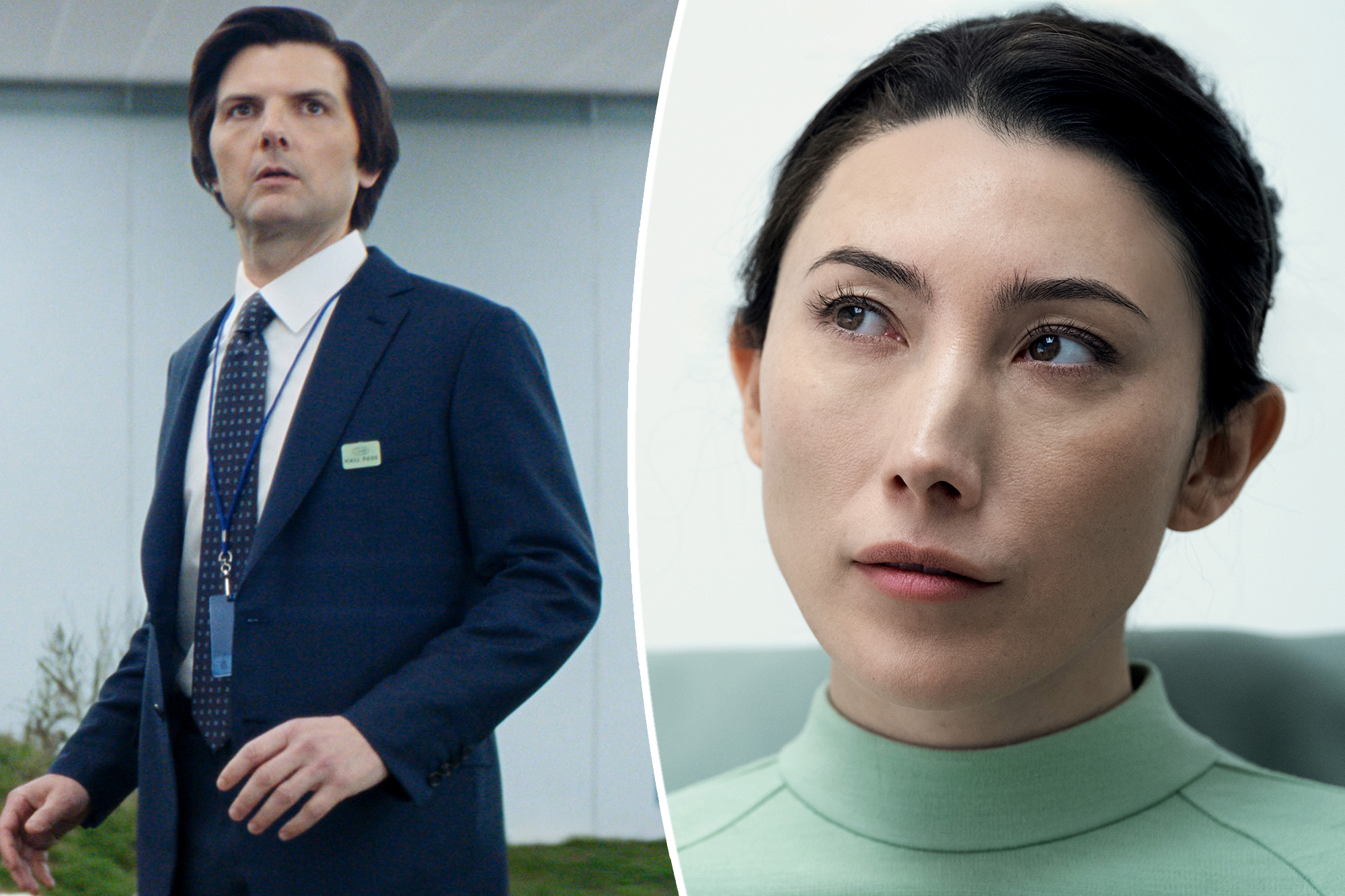 “Severance” follows employees at the sinister biotech company Lumon. They “sever” their work identities (called “innies”) from their home identities (called “outies”). Mark (Adam Scott) has an innie who is in love with his colleague, Helly (Britt Lower). However, “outie” Mark loves Gemma (Lachman), his wife, who has been trapped at Lumon on the “testing floor.”