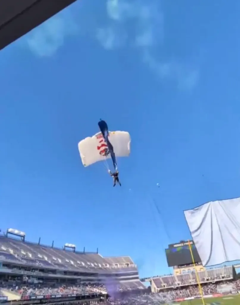 The group of jumpers were reportedly part of the All Veteran Group parachuting team, which consists of military veterans and performs at NFL and college football games.