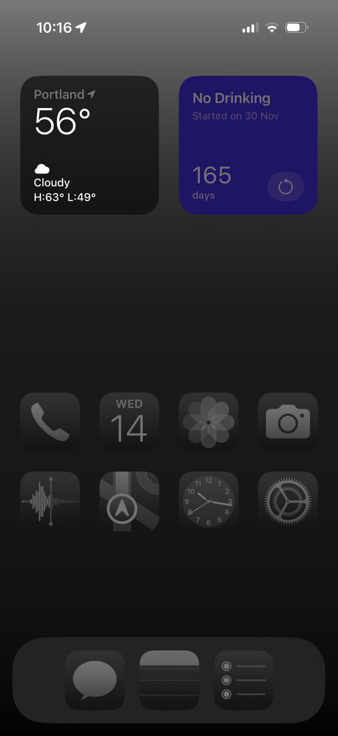 The countdown widget comes from an app called Days Since. I’m a newish dad to a very early riser, and I realized last year that even one glass of wine made me a step too slow to keep up with my active kid. I’ve set a goal to not drink for a year just to see if I can do it, and so far, so good.