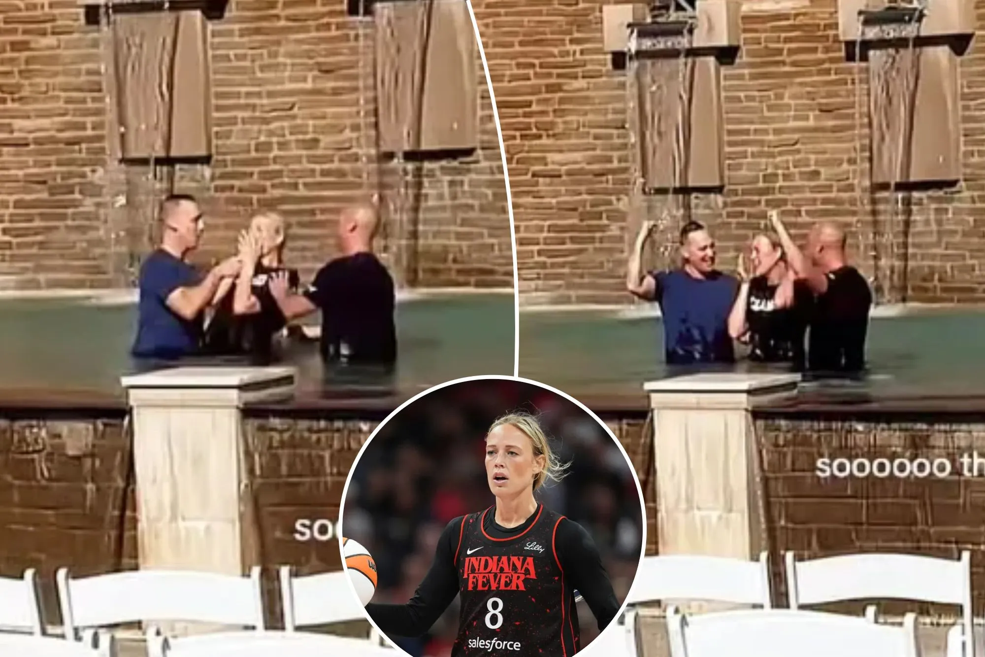 Sophie Cunningham emerges from the holy water during her second baptism. TikTok @sophiecham