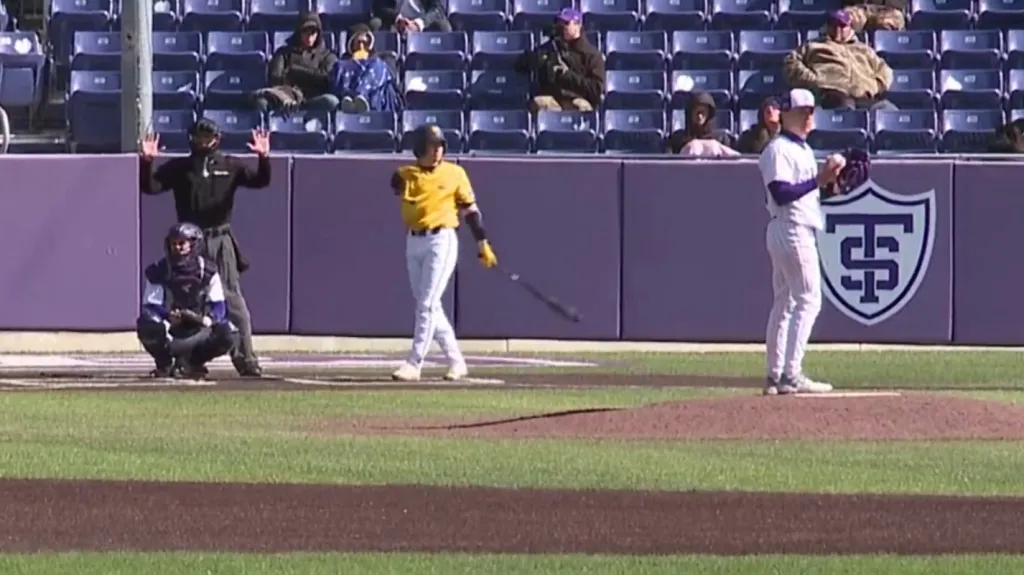 Kemp and his teammates were confused, but as explained on the Midco Sports Plus broadcast, “the first base umpire said that Kemp moved his front shoulder,” and the umpires did not bother deliberating to hear St. Thomas’ arguments.