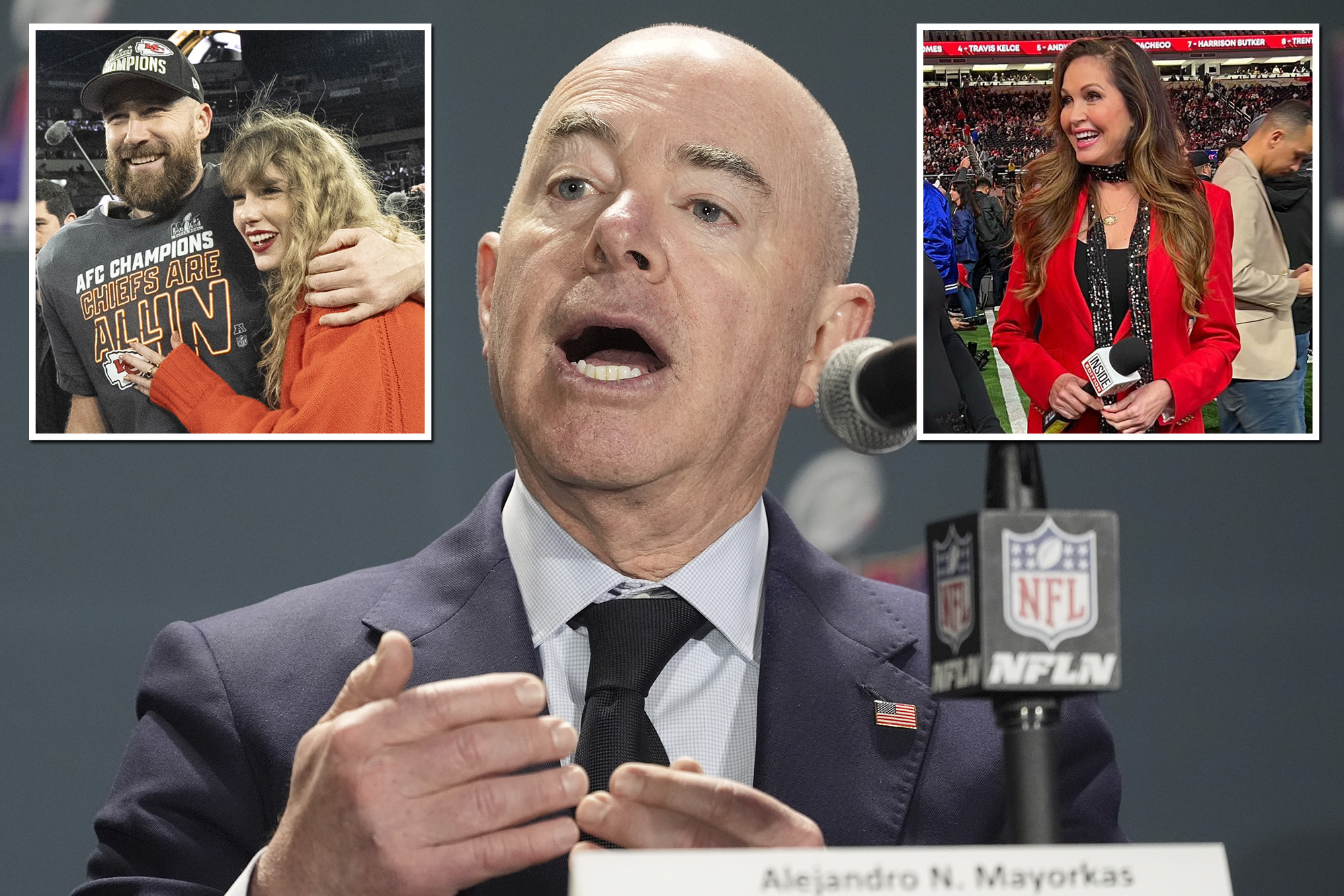 At a press conference on how the US Department of Homeland Security plans to handle the blockbuster event in Las Vegas, “Inside Edition” reporter Lisa Guerrero asked DHS Secretary Alejandro Mayorkas about Swift.