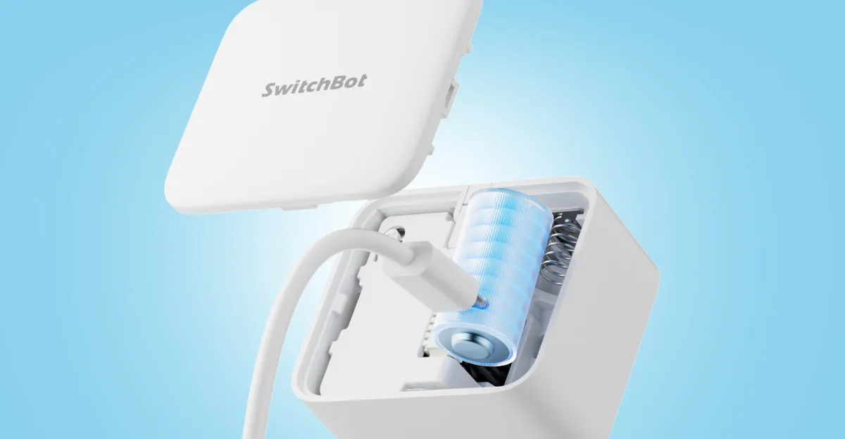 The wirelessly controlled SwitchBot Bot Rechargeable can be installed by simply sticking it to a button or rocker switch that it will physically press using a small arm that extends and retracts. Like the original, the battery is accessible by removing a panel on the front of the bot. You don’t have to uninstall it entirely. But instead of inserting a fresh battery, the 370mAh rechargeable alternative has its own USB-C port on the side for connecting to power to charge it back up.