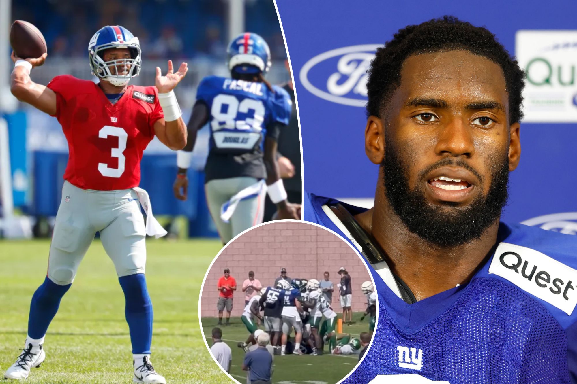 Day 2, in front of their own fans at their own facility, the Giants were especially sharp on defense and there were some fisticuffs on offense.