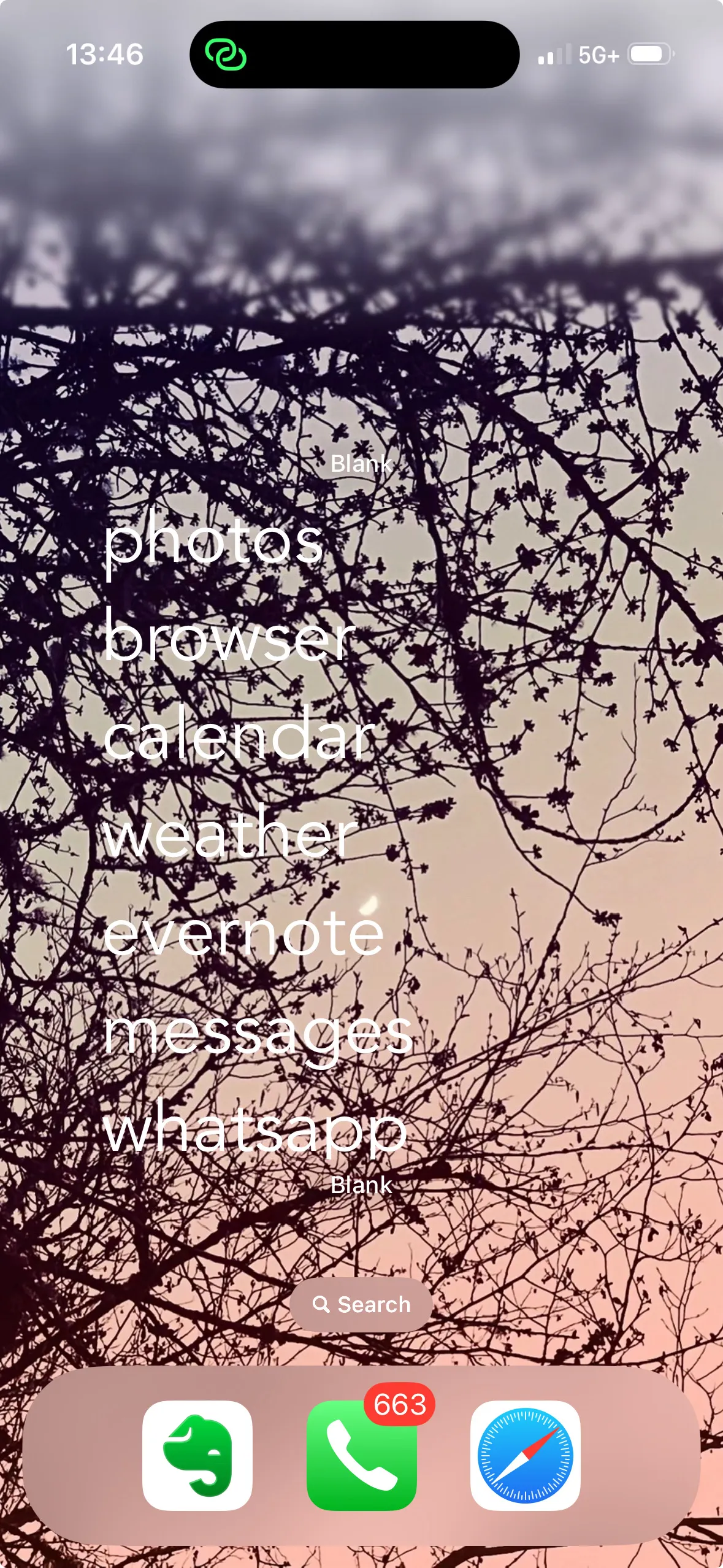 The apps: Evernote, Phone, Safari. (Blank Spaces is the app that turns the icons to text.)