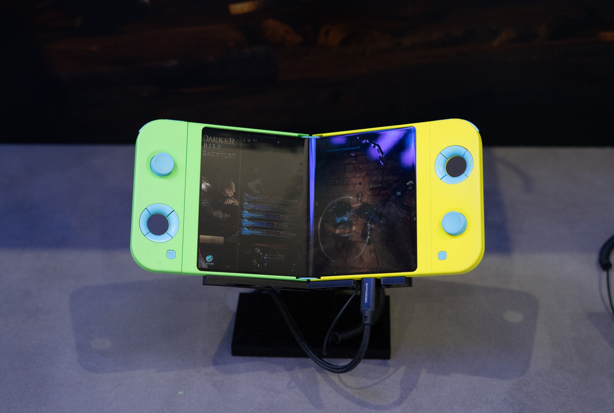 Many of the most innovative devices making their debut at MWC are concepts that could one day make their way into consumers’ hands. Samsung’s Display group demonstrated a few different prototypes including an asymmetrical Z Flip-style phone that folds in two places leaving the middle of its screen visible, and a larger folding display hidden inside a briefcase. Its most interesting concept was a Nintendo Switch-style handheld console with a hinge in the middle allowing it to fold in half for improved portability.