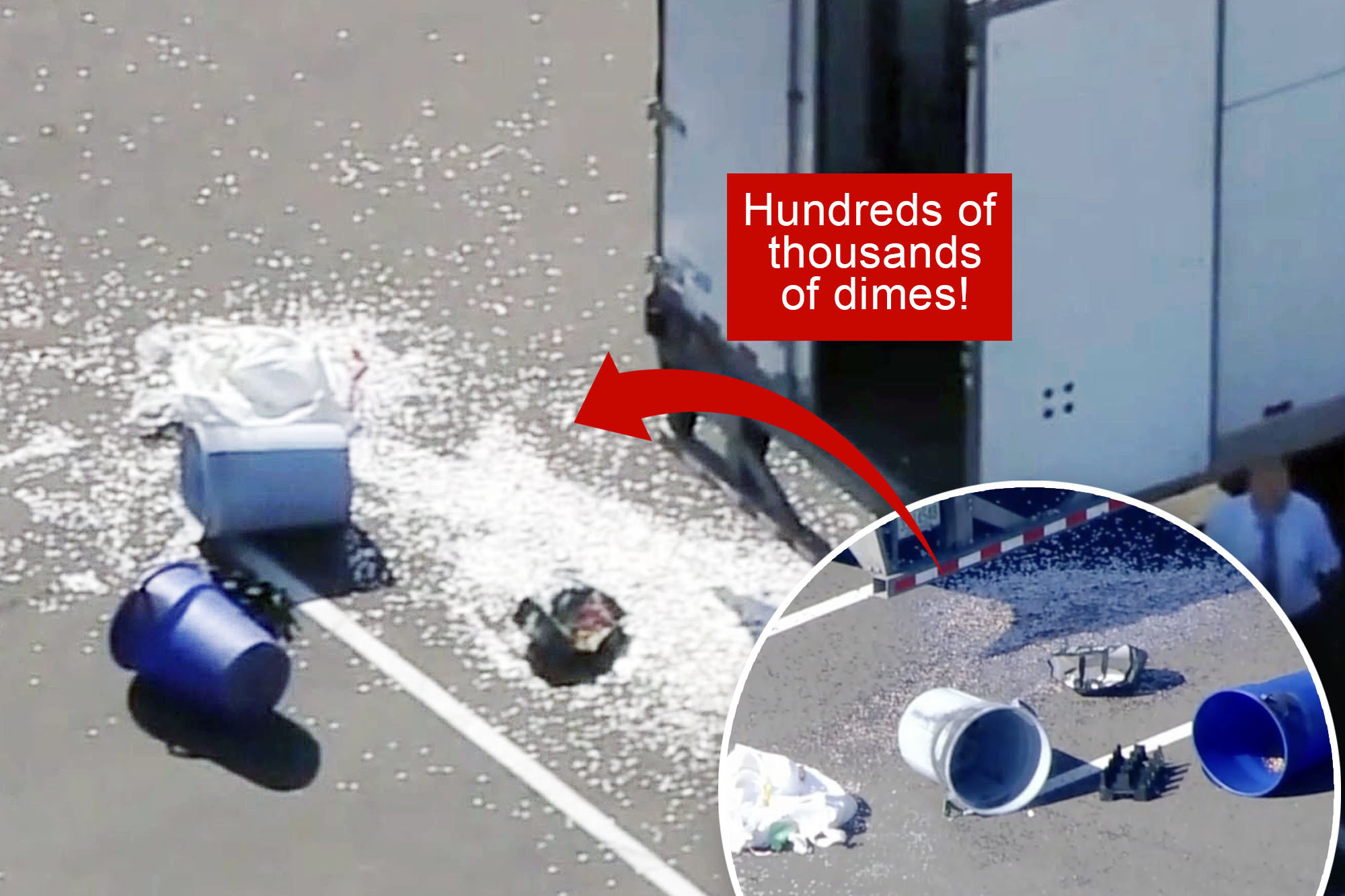 During the night, four thieves made off with a hefty portion of the six-ton shipment of dimes, leaving hundreds of thousands of the coins scattered across a Philly roadway as they moved millions of dimes from the tractor-trailer — which they forced open with bolt cutters — to their own white box truck, per The Inquirer.