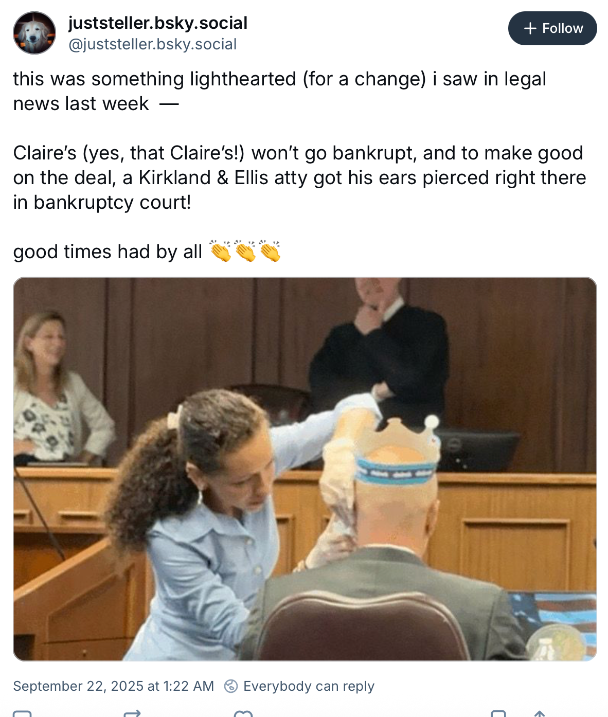 “At the end of the hearing, I said, ‘Your honor, we are focused on preserving jobs and keeping stores open for a long time so many people can get their ears pierced. If we can get a deal done, I am willing to get my ears pierced,’” Sussberg told American Lawyer.