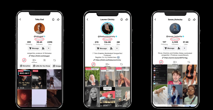 TikTok will now let songwriters highlight tracks they’ve written or co-written directly on their profiles. The list of songs will live within the “Music” tab on their profile, similar to the one TikTok already offers for artists on the platform. Users who register as songwriters will also get a “Songwriter” label beneath their account name.