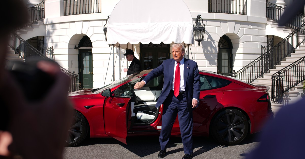 At a White House event where he promised to buy a Tesla, President Donald Trump says he’ll label violence at Tesla locations as domestic terrorism.