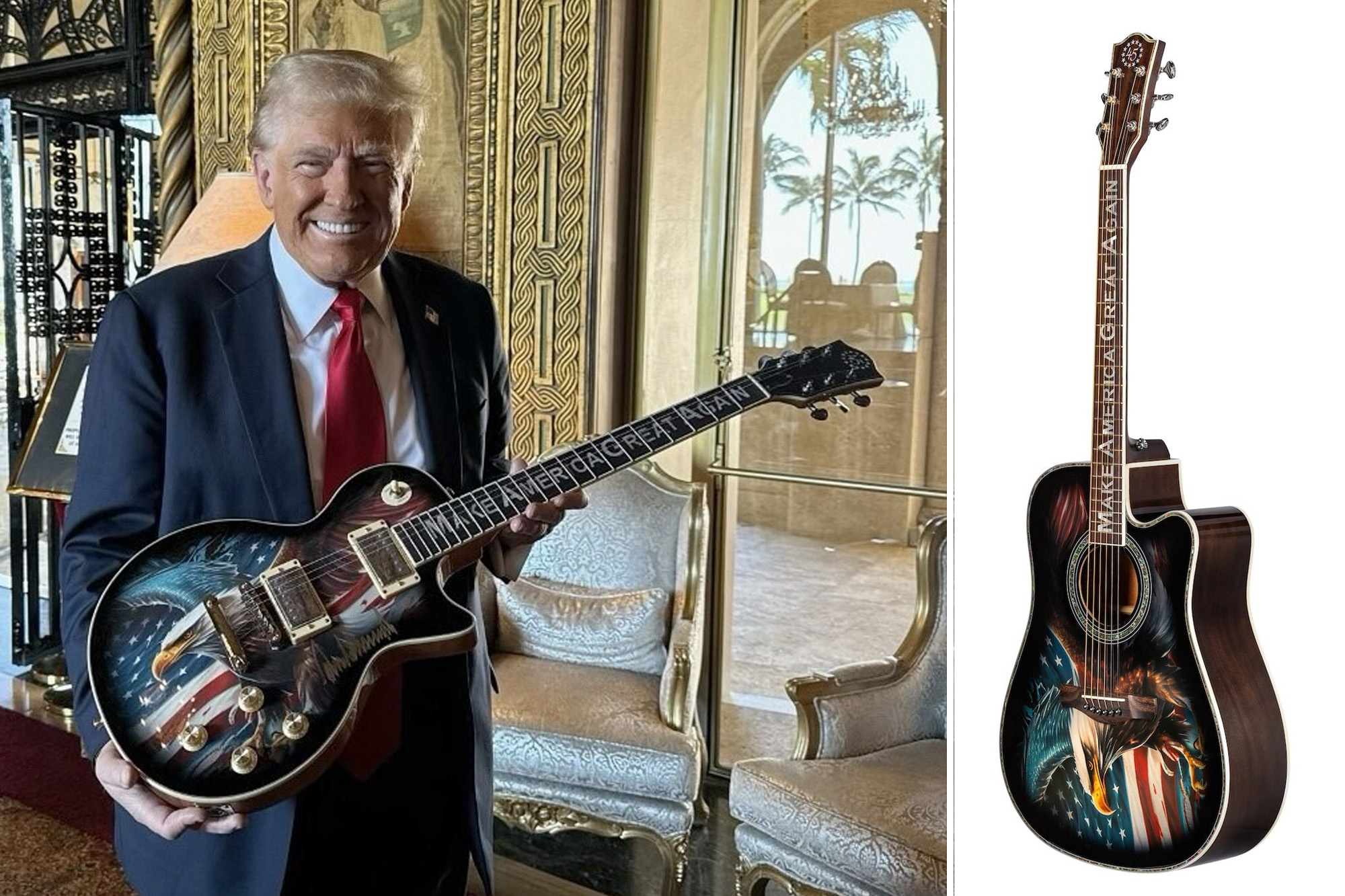 “Coming Soon! The Limited Edition ‘45’ Guitar. Only 1,300 of each Acoustic and Electric Guitars MADE — Some personally signed!” Trump wrote on Truth Social.