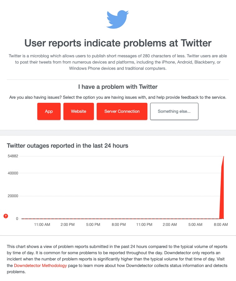 A spike showing the outage at Twitter.