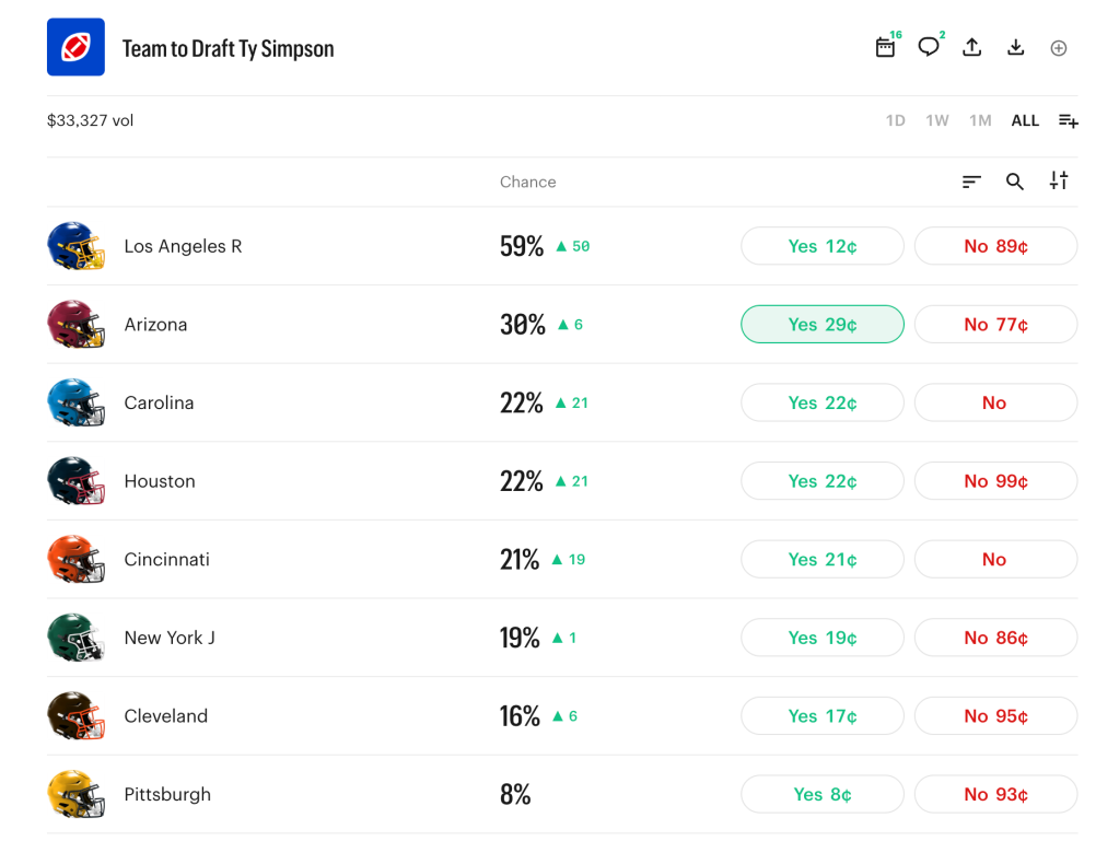 Ty Simpson’s chances of being drafted by each team are revealed on Kalshi. Kalshi