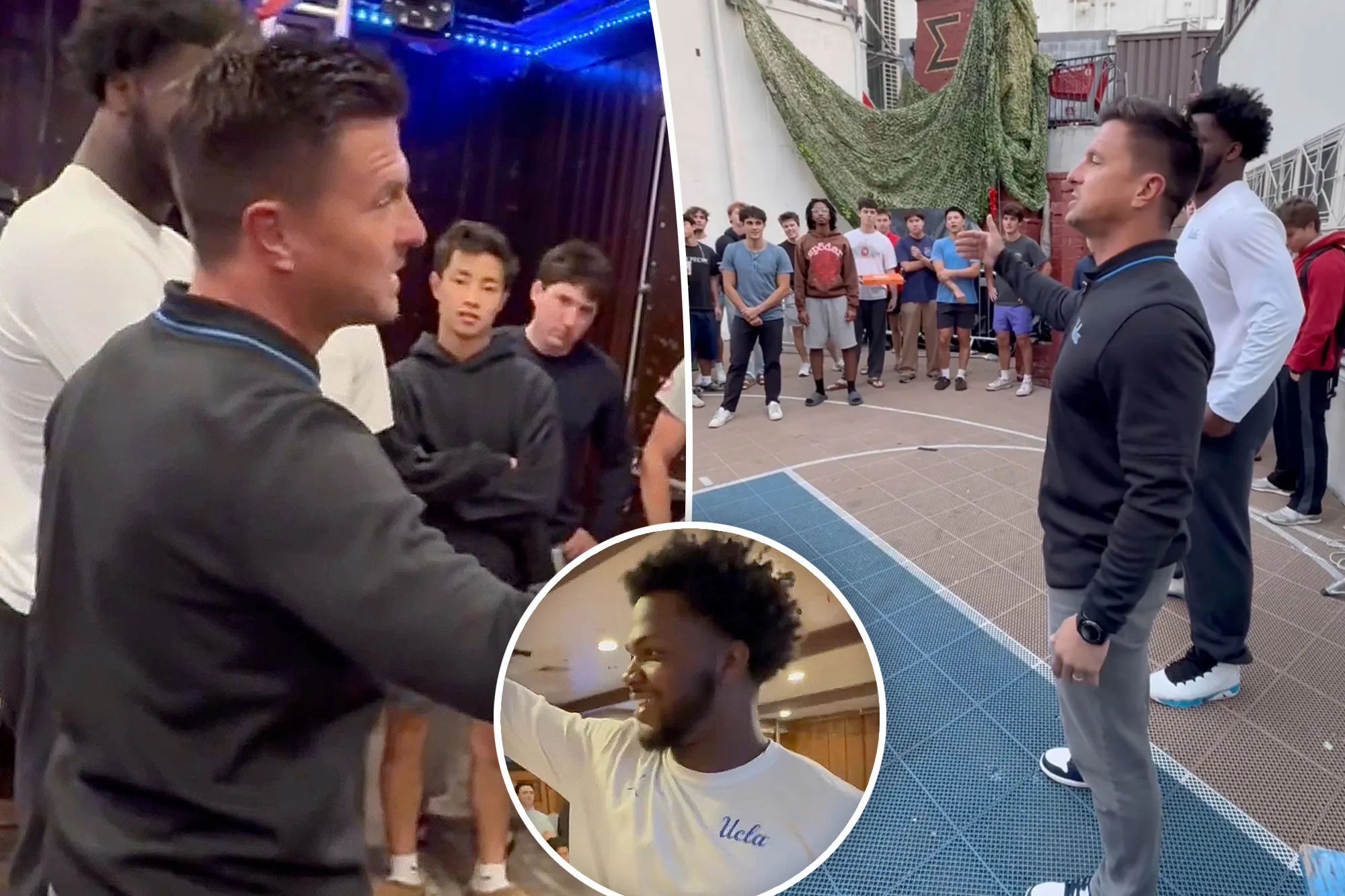 Players shot hoops on an outdoor court and Chensey spoke about the importance of supporting the Bruins.