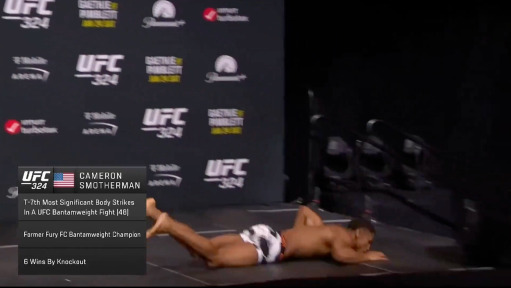 Ahead of UFC 324, prelim fighter Cameron Smotherman successfully made weight but collapsed getting off the scale, falling onto the stage and appearing to hit his head before lying unconscious on the floor.