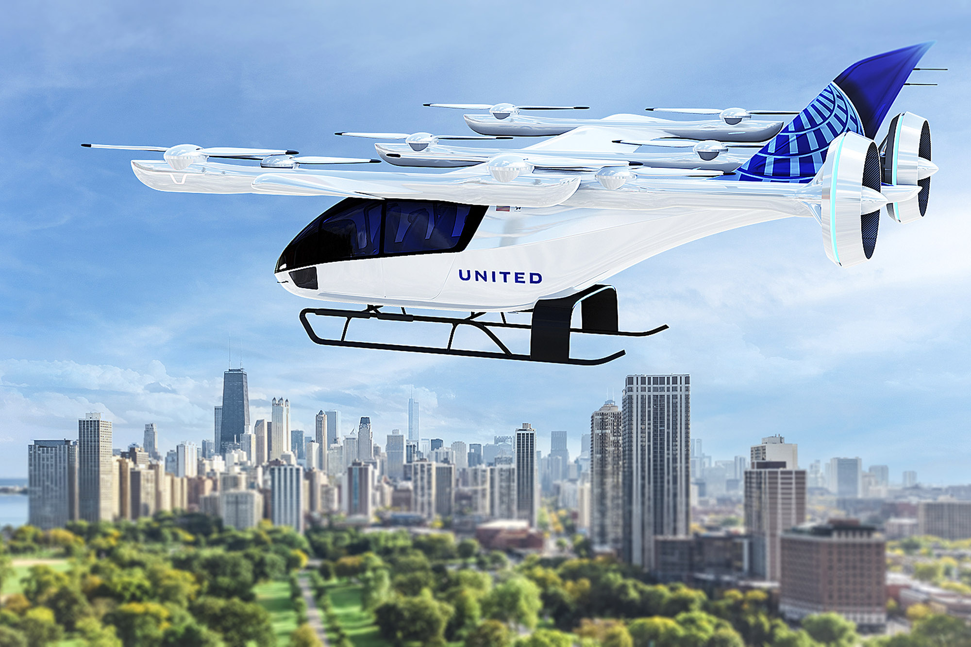 United Airlines thinks that in a few years, plenty of big-city customers will pay $100 or more for a one-way ride to the airport in a four-seat, electric-powered air taxi.