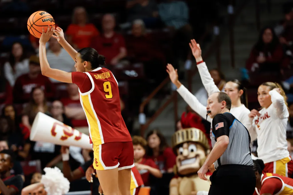 Davidson, a 6-foot-1 freshman, stroked a perfect shot from the right side to send the Trojans (18-13) into a second-round matchup with top-seeded South Carolina on Monday.