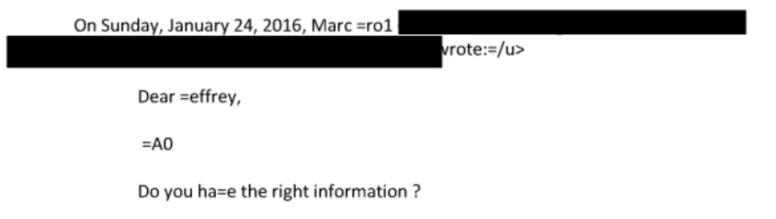 Many of the emails released by the Department of Justice from its investigation into Jeffrey Epstein are full of garbled symbols like: