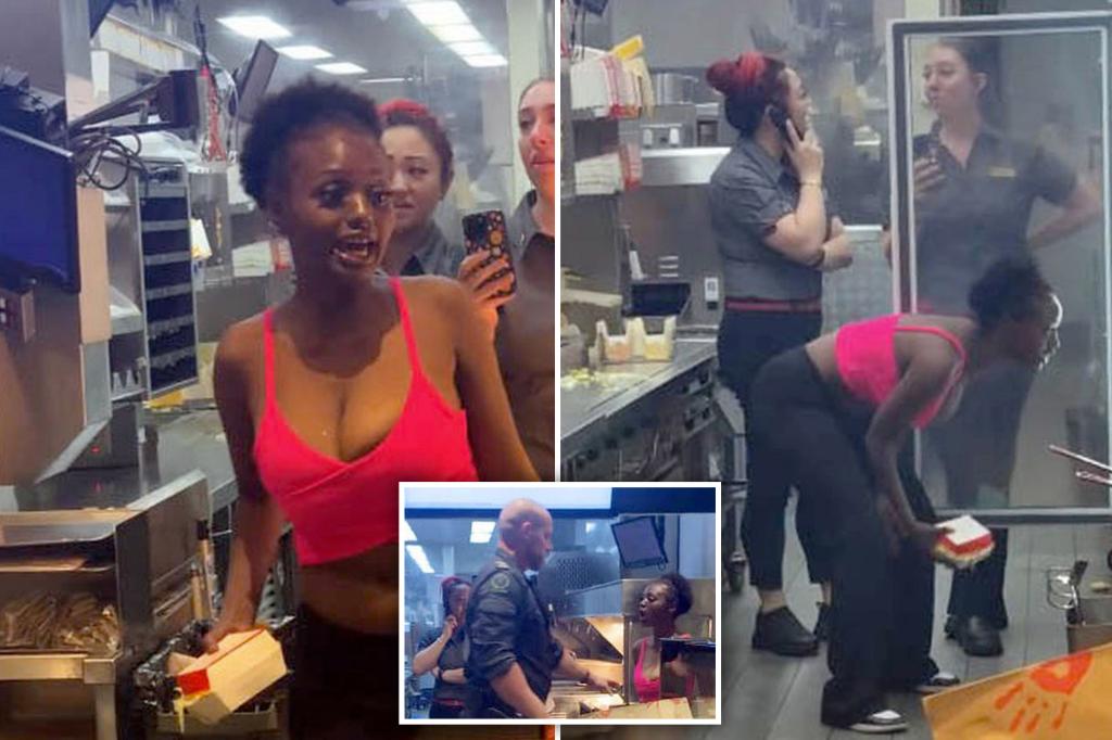 A woman has been arrested after she was seen in a viral TikTok video screaming at McDonald’s staff before jumping the counter and making herself a burger.