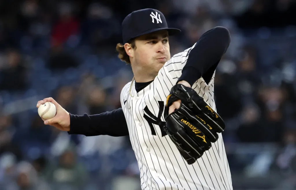 “Not quite as dominant as his first two [starts], obviously,” manager Aaron Boone said. “You kind of think he’s just going to roll out there for seven innings and 75 pitches and strike everyone out. You realize it’s not that easy. He had some longer at-bats tonight where he just wasn’t quite as sharp with his command.”