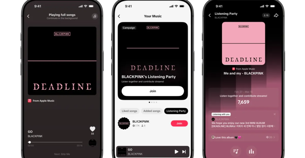 Listening Party is a version of the Play Full Song feature that allows multiple TikTok users to listen simultaneously. Apple says the feature is designed to “bring artists and fans together around music” by creating a shared Apple Music environment within TikTok where fans can listen to songs from their favorite performers and interact with each other in real time, and even engage with the artist directly.