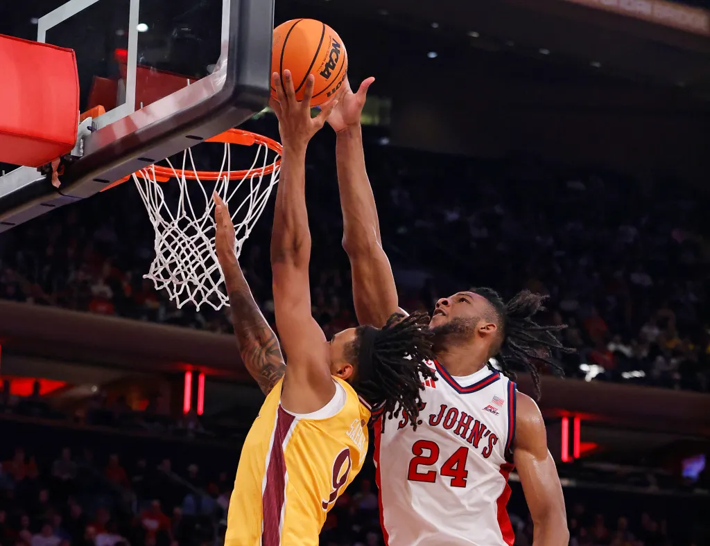 That’s what Zuby Ejiofor has done in St. John’s past two games, by far their best defensive performance of the young season. In much-needed wins over Ole Miss and Iona University following the disappointing 1-2 trip to Las Vegas, Ejiofor has averaged 9.5 rebounds, eight blocks and 1.5 steals. The 6-foot-9 tri-captain hasn’t gotten many shots — just 13 in these two contests — and it hasn’t let it affect him. He has imposed his will on the defensive end, and his teammates have followed. St. John’s held both Ole Miss (58) and Iona (64) to season-lows in points. On Saturday, the Johnnies ran the 3-point happy Gaels off the line — they attempted only 19 3s, eight fewer than their season average — and Ejiofor was there to reject countless drives. He became the first Division I player to block eight shots in consecutive games since Marshall’s Obinna Anochili-Killen in November 2021. He’s done much more than just talk about St. John’s needing to get better defensively; he has gone out there and made it happen.